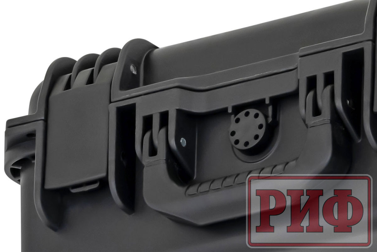 Защитные кейсы РИФ изготовлены из противоударного и чрезвычайно прочного пластика – его можно переехать на автомобиле, и ценное содержимое не пострадает. Кейсы абсолютно герметичны и содержимое кейса гарантировано защищено от доступа пыли и влаги благодаря резиновой прокладке и плотно закрывающейся крышке.