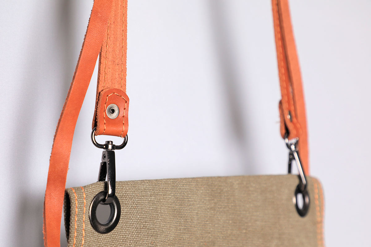 - Материал: Ткань хлопчатобумажная плотная мягкая типа «брезент», лямки — высококачественная кожа КРС, фурнитура — никелированная сталь